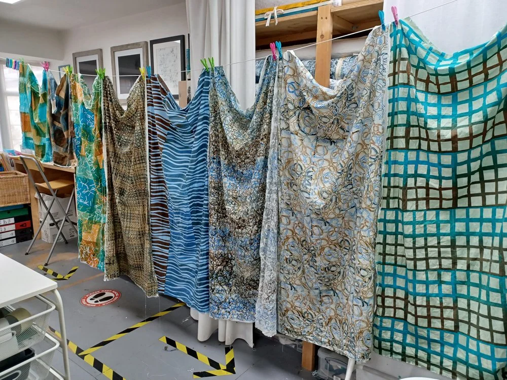 Still, I really love printing and dyeing fabric so I am in my element! The studio is full of colour and I’m as happy as a pig in a bath full of gin and chocolate! Not that there is time for gin. There is always time for chocolate.